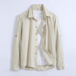 Camisa de lino de primavera y verano para hombre, camisa informal de manga larga holgada y transpirable para hombre