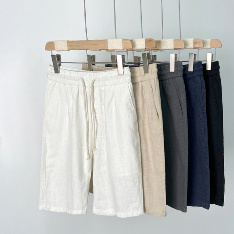 Medias pantalonetas de verano informales personalizadas para hombre, 100% de lino puro, ajuste holgado tejido con cintura elástica, medias pantalonetas transpirables