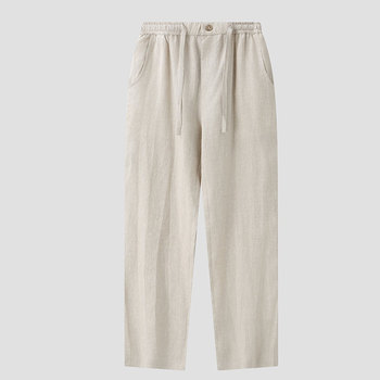 100% pantalones casuales de lino de estilo chino para hombre, pantalones largos rectos versátiles ligeros de cintura media con servicio OEM