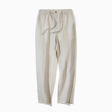 กางเกงลำลองผ้าลินินทรงหลวมสำหรับผู้ชายขนาดธุรกิจผ้าลินิน100% ฤดูร้อน